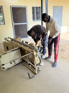 Preparation for a trip to Chad begins months before the travel date! Air travel has made so many things easier when working overseas especially a country as poor as Chad. Many important items can be stuffed into suitcases to help make the care at the hospital and also activities of daily living easier. It really takes a community to raise a hospital. In the last year, we brought a broken X-ray head back to the States and a repaired one back to Chad. A new electro-coagulation machine, portable X-ray stand, twenty-four stretcher wheels to replace the overly/well used ones, and a dermatome and skin Mesher (for skin grafts), fetal Dopplers, caster wheels and solar powered outside lights are just some of the things brought. In August, Debbie brought back a replacement piston for our old portable X-ray stand. Ron O’Neal, founder of InRayPart, was able to coach us via video WhatsApp to replace the broken one with the new one. Not only suitcases are important to missionaries but also technology and willing knowledgeable individuals to help with the process! Thanks Ron!